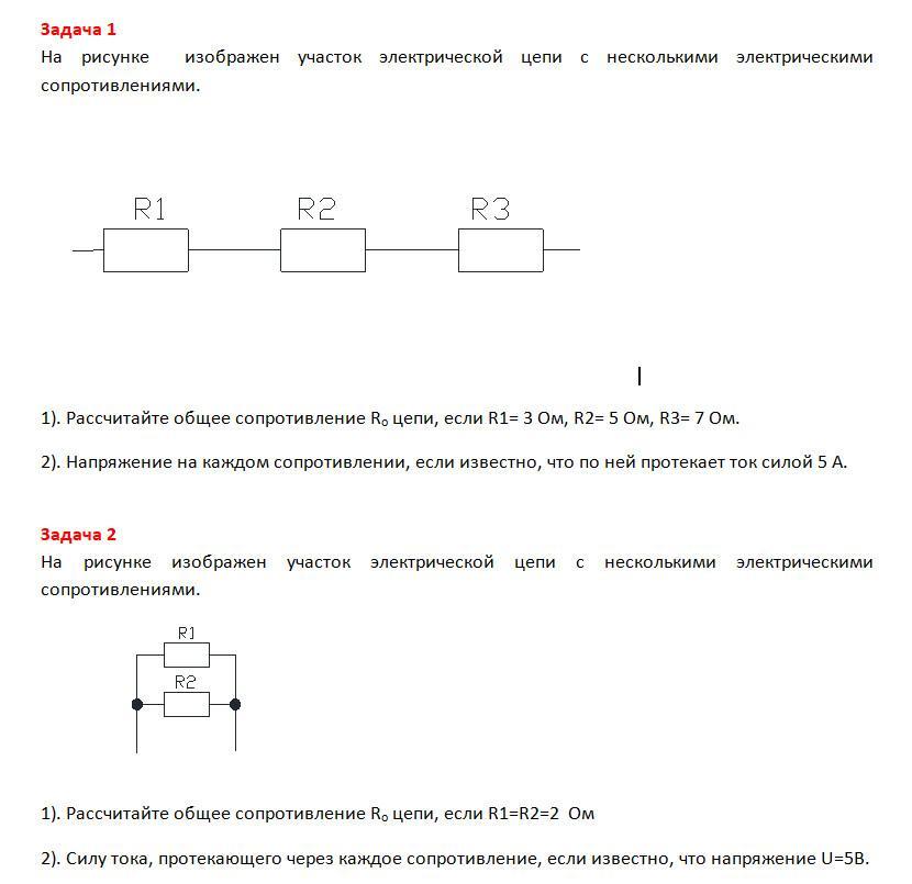 1) R0 = R1 + R2 + R3 = 3 + 5 + 7 = 15 Ом