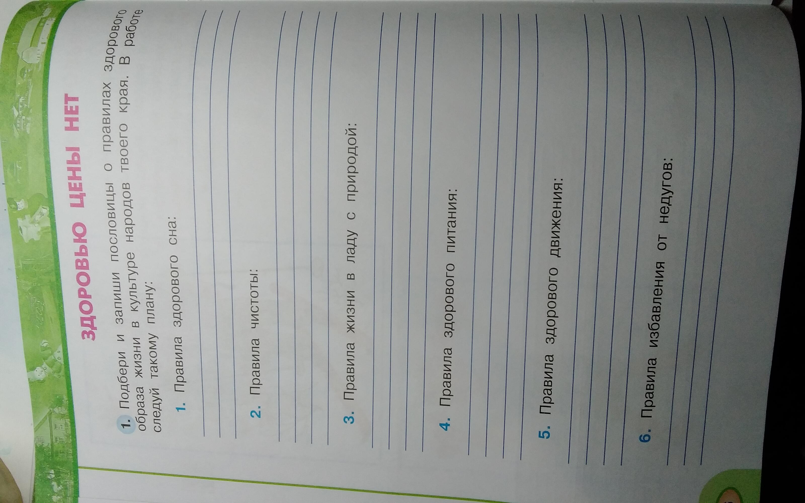 Подбери и запиши пословицы о правилах здорового образа жизни в культуре народов твоего края. В работе следует такому плану:(смотреть фото)