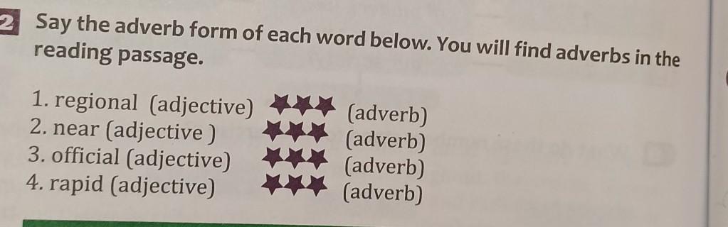 Say the adverb form of each word below. You will find adverbs in the