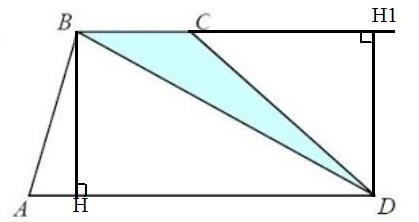 Площадь △BCD можно найти через высоту DH1, опущенную из точки D на продолжение стороны BC: