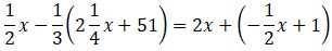 (1/2)х-(1/3)*(9х/4)-(1/3)*51=2х-(1/2)х+1;