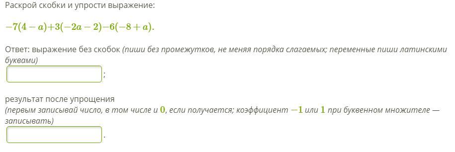 -7(4-а)+3(-2а-2)-6(-8+а)= -28+7а-6а-6+48-6а=-28-6+48+7а-6а-6а=14-5а
