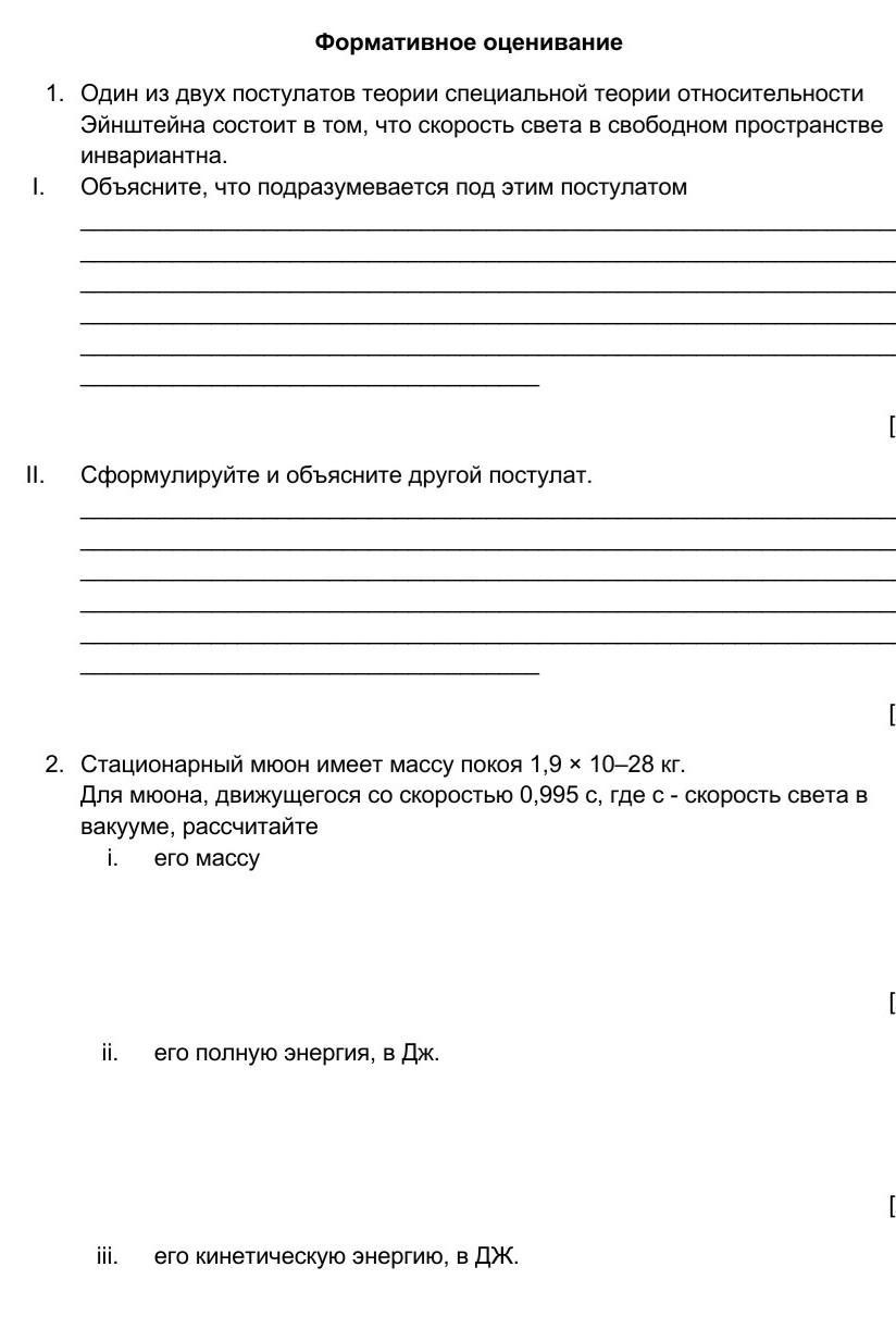 2. Стационарный мюон имеет массу покоя 1,9 × 10–28 кг.
