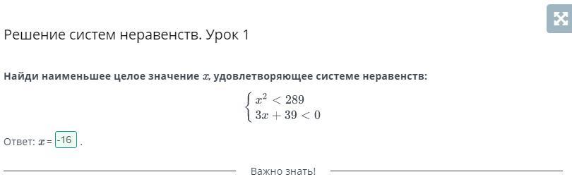 Найди наименьшее целое значение x, удовлетворяющее системе неравенств: