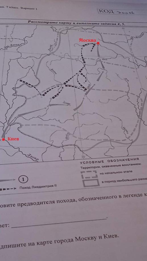 что за война здесь происходит?назовите предводителя похода, обозначенного в легенде карты цифрой 1.подпишите на карте города Москву и киев