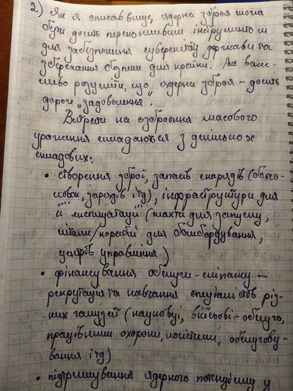 1) Чи згодні Ви з тим, що атомна зброя є «чинником стримування» від міжнародних конфліктів і війн?