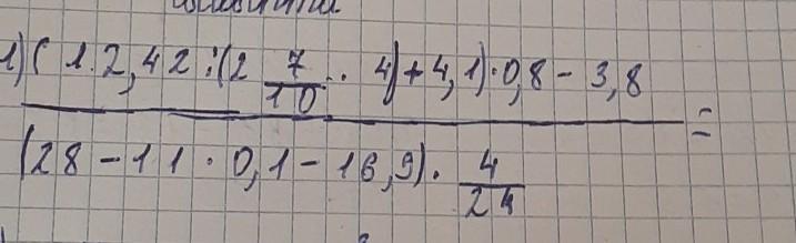 1. ((12,42÷(2 7/10 ·4)+4,1)·0,8-3,8)/((28-11·0,1-16,9)·4/24)