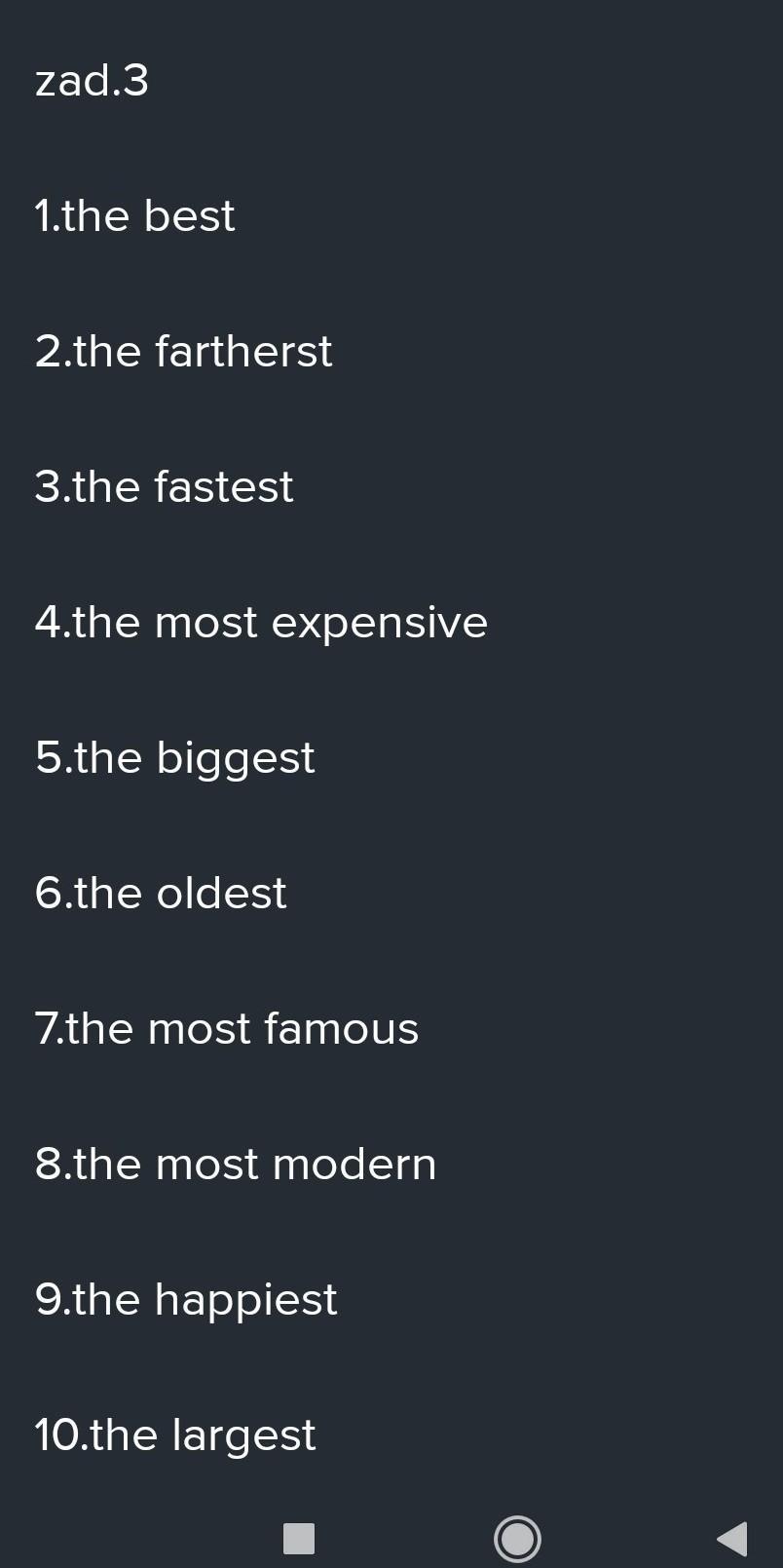2 Make true sentences from the chart. Use the superlative
