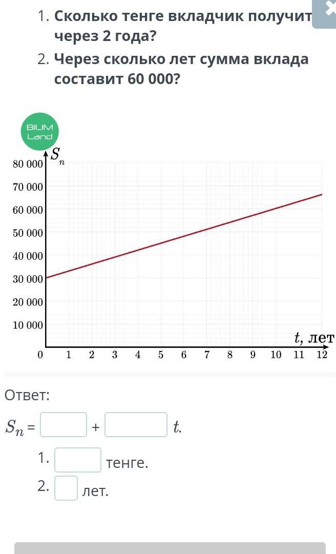 Вкладчик вложил в банк 30 000 тенге. Если процентная ставка составит 10 % и формула простых процентов Sn = S0