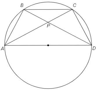 Рівнобічну трапецію вписано в коло, центр якого належить одній з основ. Кут між діагоналями трапеції, протилежний її бічній стороні, дорівнює 56°. Знайдіть кути трапеції.