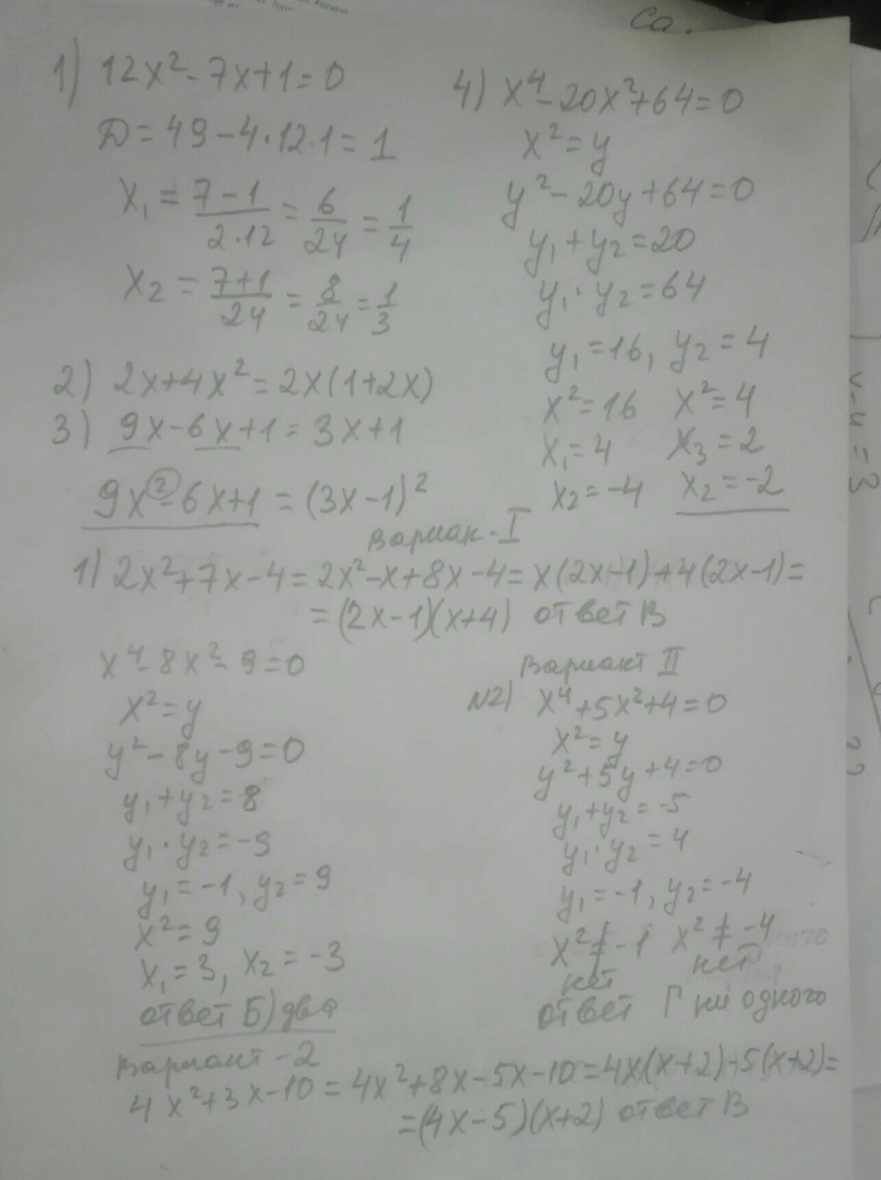 Вариант1 ответ первого задания В) (2х-1)(х+4) задание №2 ответ Б) два
