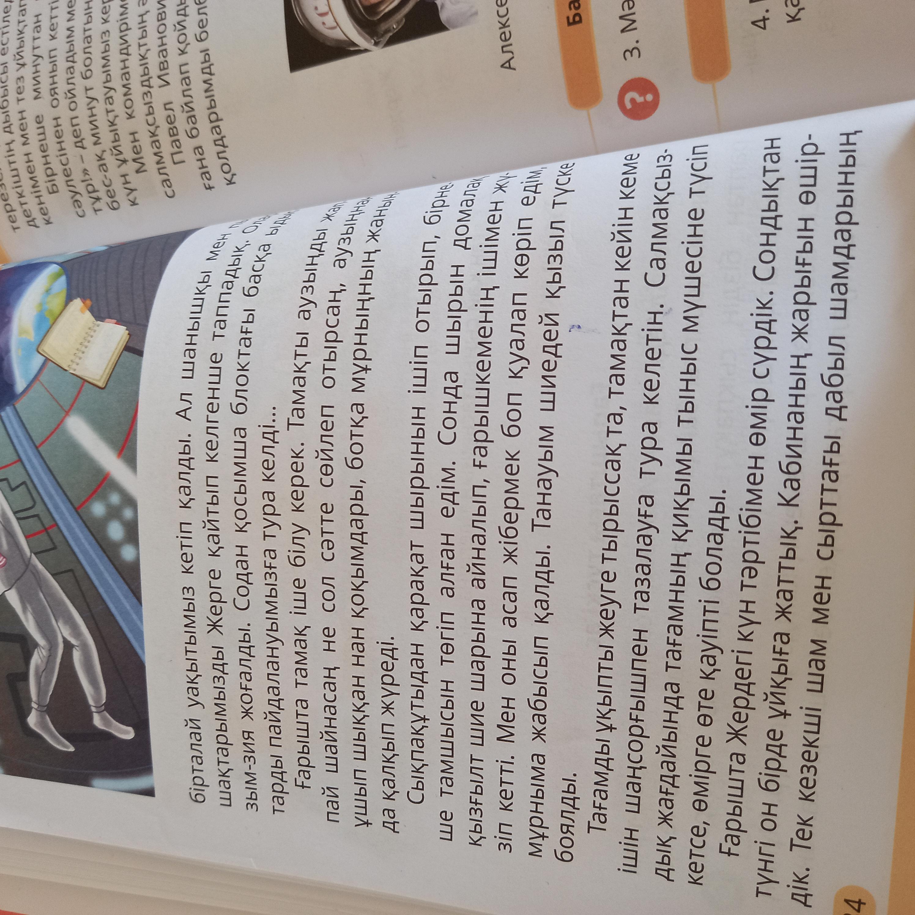 Ғарышта адамдар не жейді беп ойлайтын боларсыздар. Олар сорпа жасап оны кептіріп, арнайы сықпаға салады. Ал ғарышта оны қайта қайнатып ішеді. Ал тамақты жеп жатқанда аузыңды ашып қойсаң ұятқа қалып аузыңдағы тамақ ұшып, қалғып кетеді. Ғарышкерлердің жұмысы оңай емес