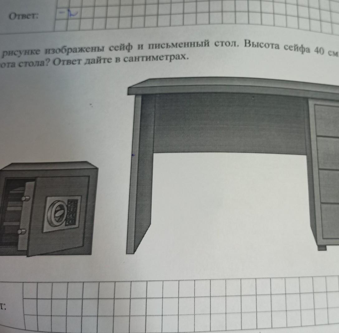 на рисунке изображён сейфы письменный стол высота сейфа 40 см Какова примерная высота стола см