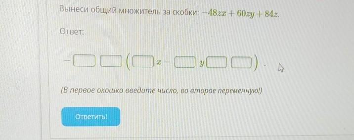 Вынеси общий множитель за скобки: — 48zx + 60zy + 84z.