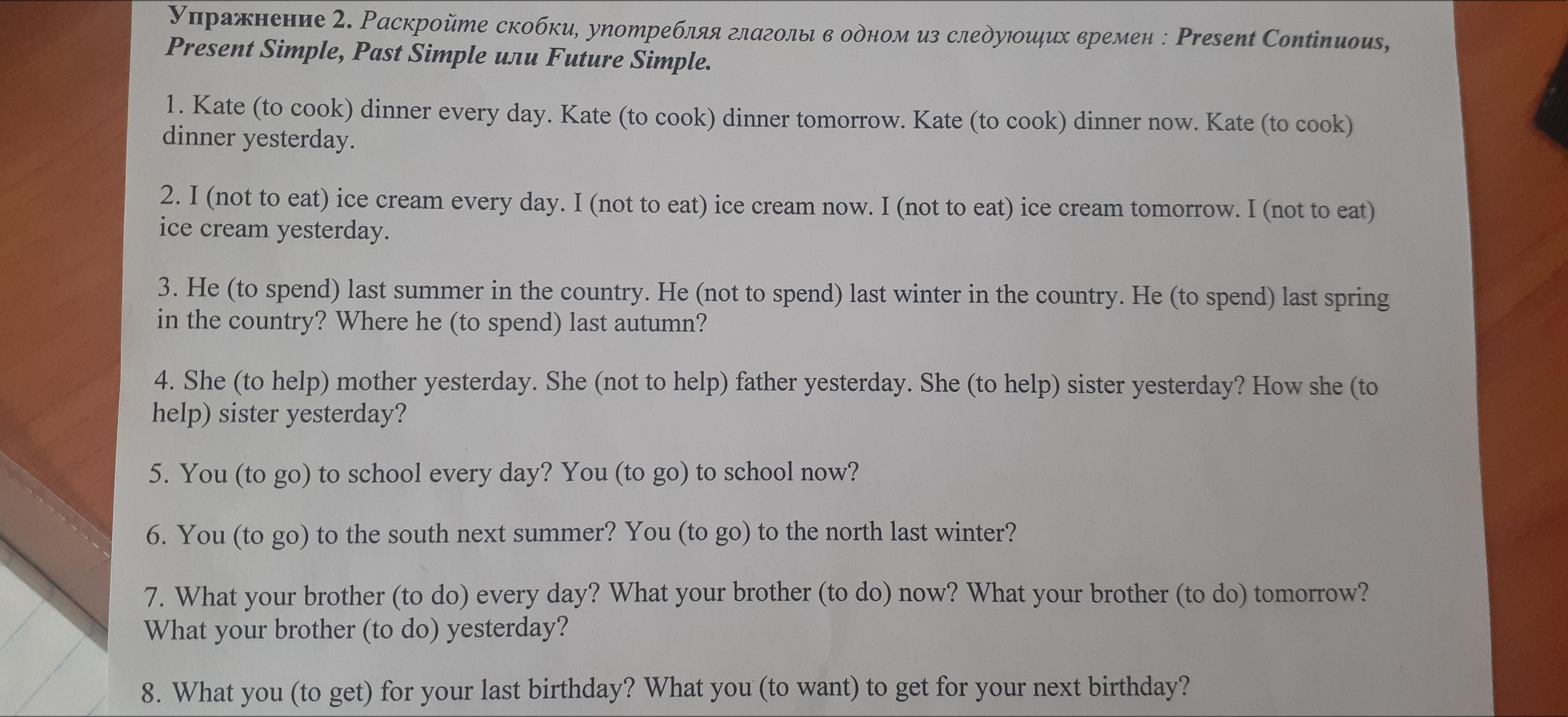 7.What does your brother do every day?What is your brother doing now?WHat will your brother do tomorrow?WHat did your brother do yesterday?