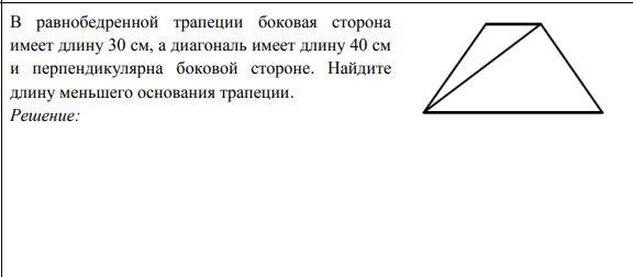 имеет длину 30 см, а диагональ имеет длину 40 см