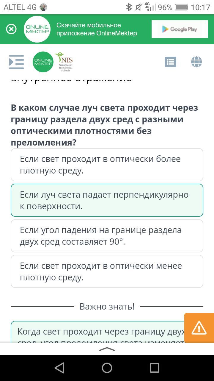 В каком случае луч света проходит через границу раздела двух сред с разными оптическими плотностями без преломления?
