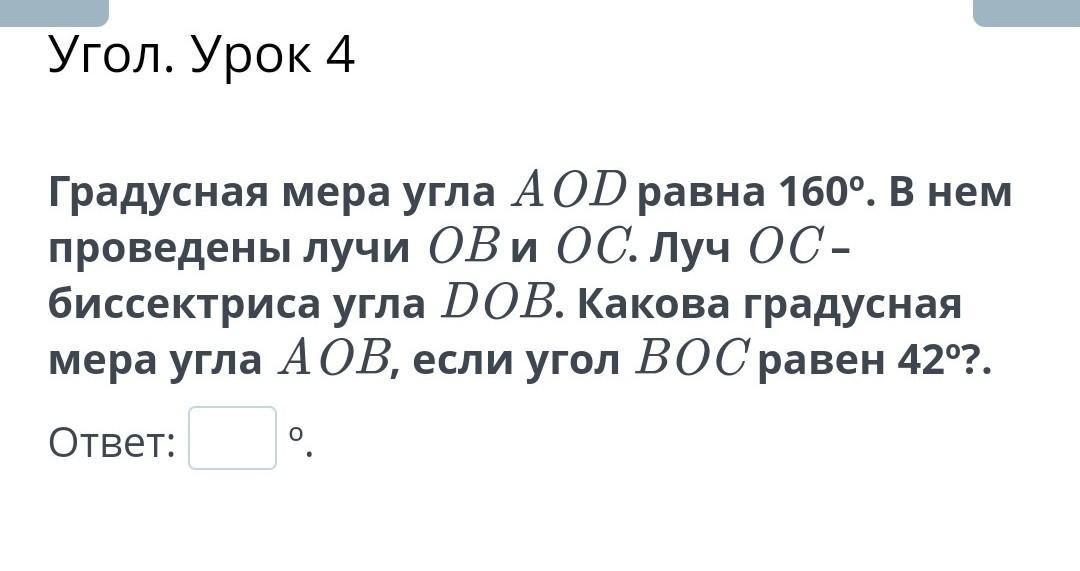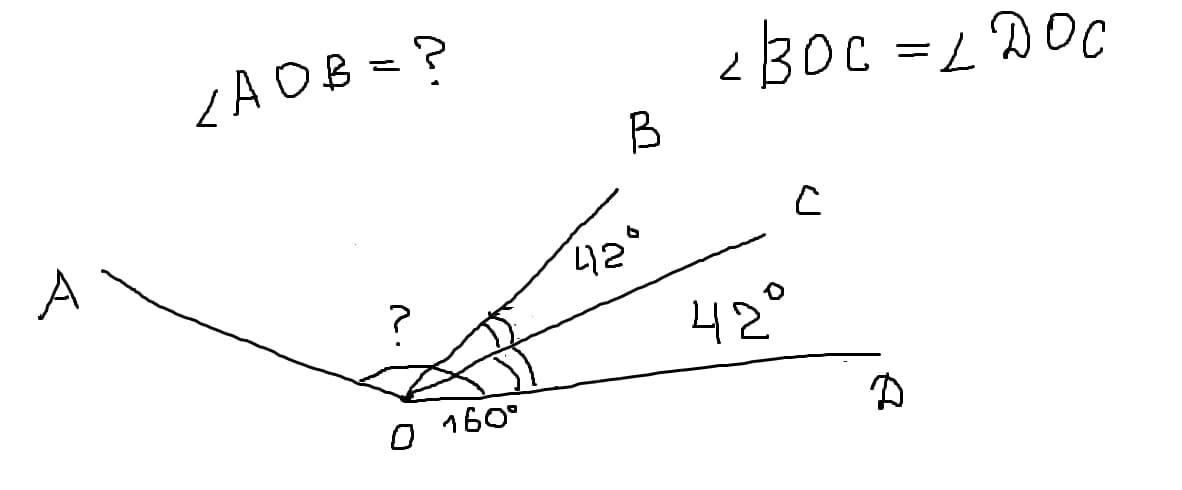 Угол AOB = AOD - DOB = 160 - 84 = 76 градусов