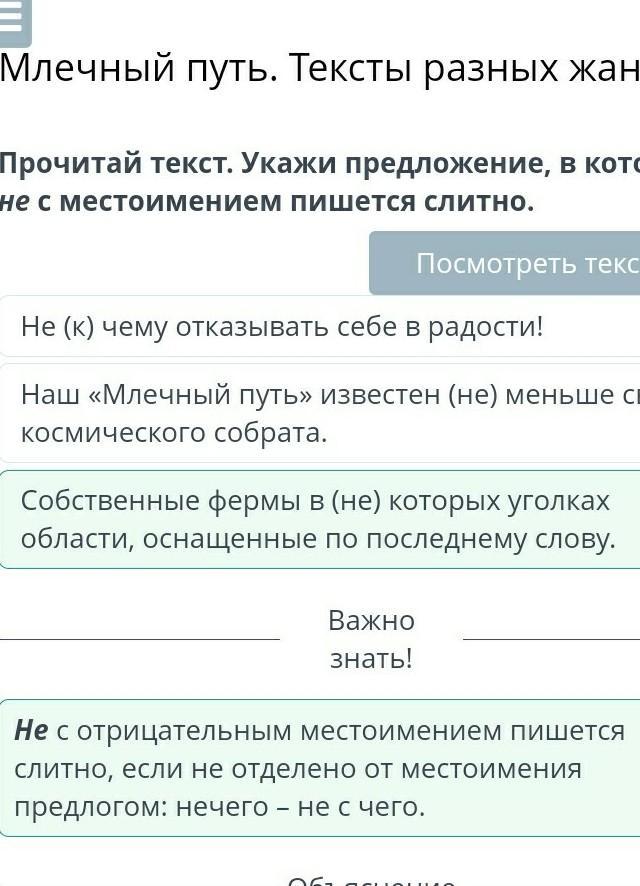 Прочитай текст. Укажи предложение, в котором не с местоимением пишется слитно.