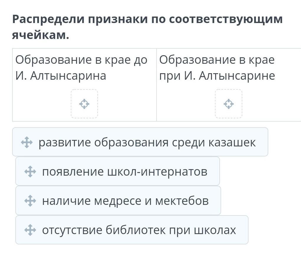 Распредели признаки по соответствующим