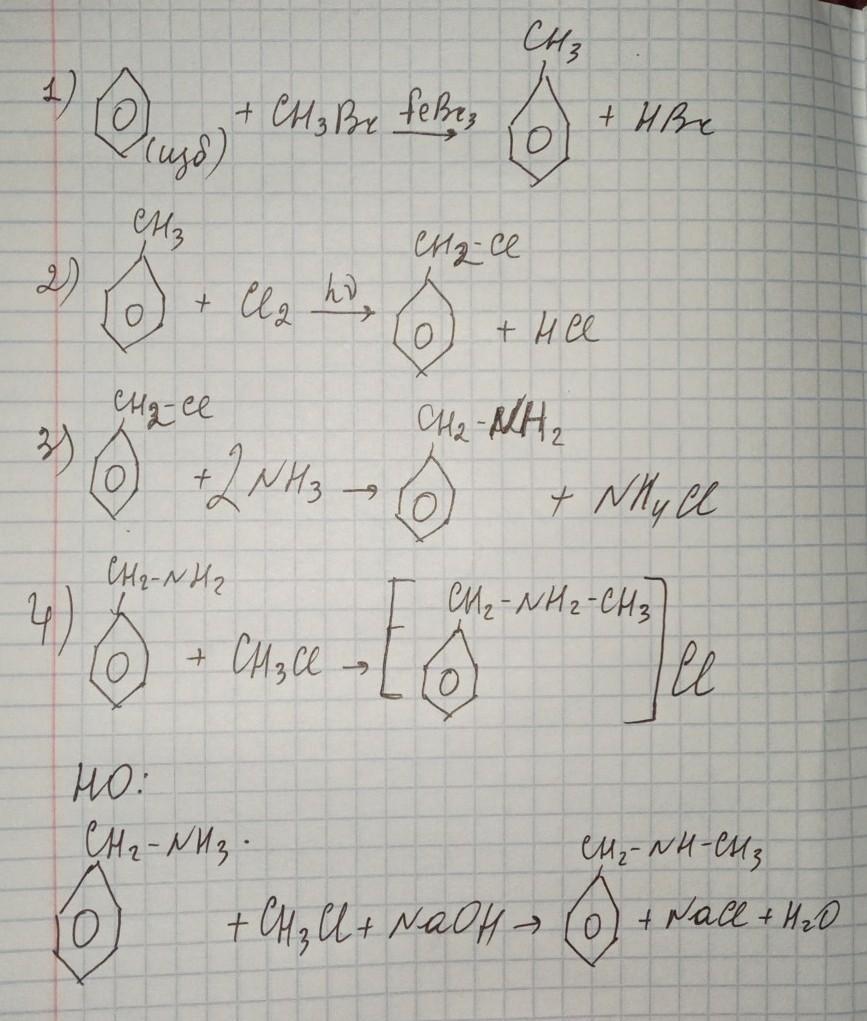 2) галогенировани на свету, если на свету, то пойдёт радикальное замещение, если бы было каталитическое (кат - FeCl₃, AlCl₃) то образовались бв орто-, пара- замещеные продукты