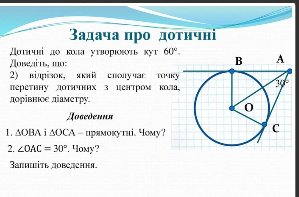 ОВА і ОСА прямокутні, тому що відрізок (ВО, ОС), що сполучає дотичну з колом є перпендикулярним.