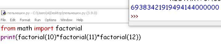 Вычислите при помощи языка Питон значение выражения 10! * 11! * 12! (факториал числа