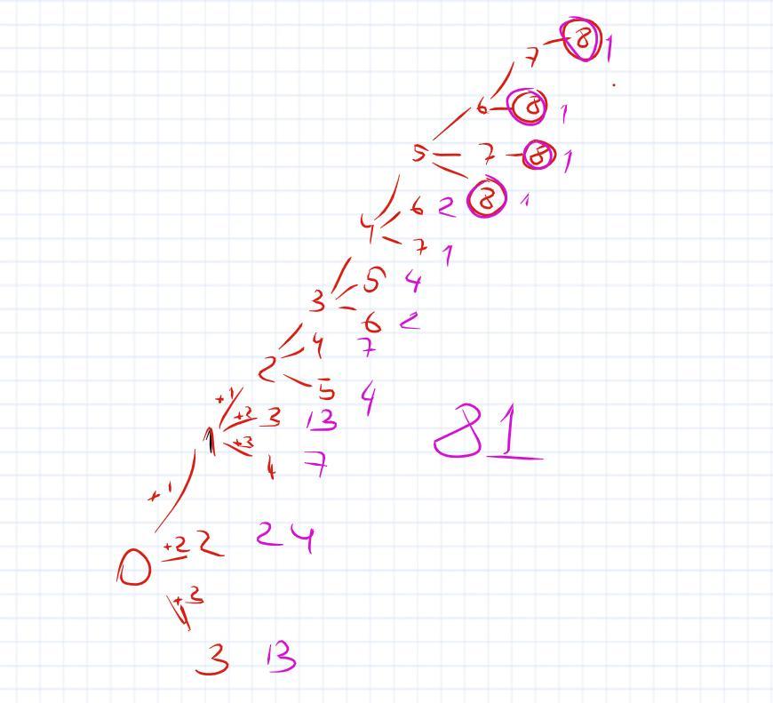 Изначально на 0-й ступеньке. 0→8