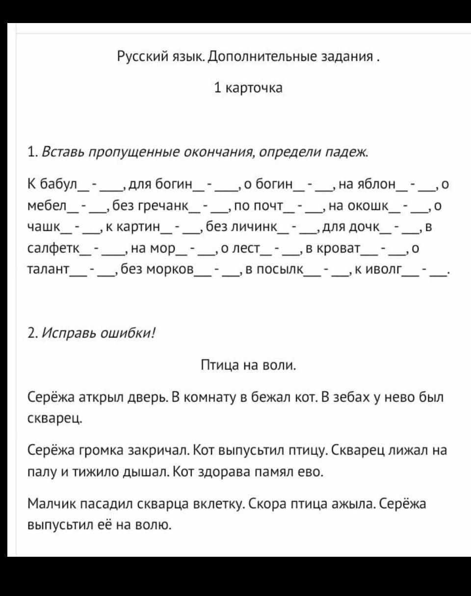 Серёжа громко закричал.Кот выпустил птицу.Скворец лежал на полу и тяжело дышал.Кот здорово помял его.
