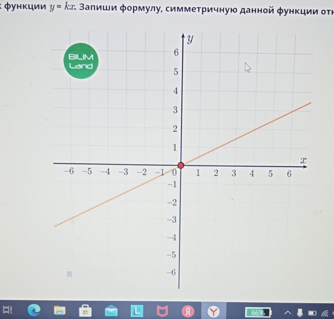 Дан график функции у = kx. Запиши формулу, симметричную данной функции относительно оси