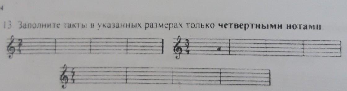 2/4 - в каждом такте пишешь любые две ноты четвертными (например: до-ля; фа-соль; ре-си; ми-ля);