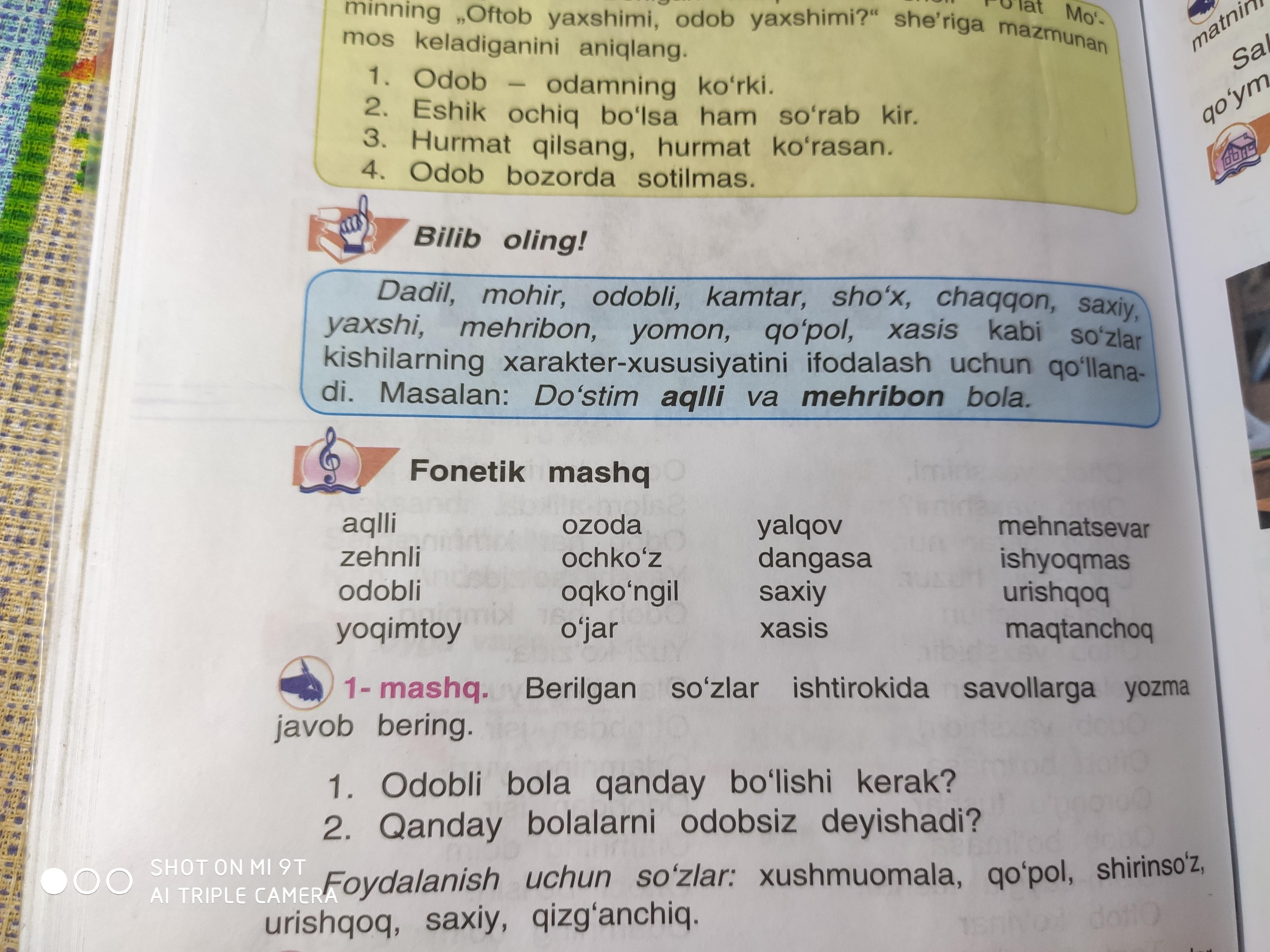 1.Odobli bola doimo xushmuomala, shirinso'z va albatta saxiy bo'lishi kerak!