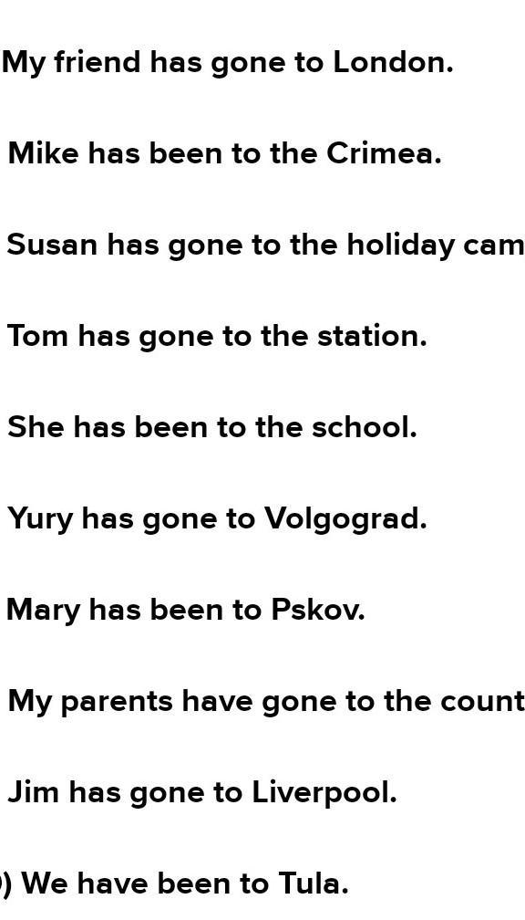 8) My parents have gone to the country.