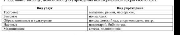 1. Составьте таблицу, показывающую учреждения нематериальной сферы своето