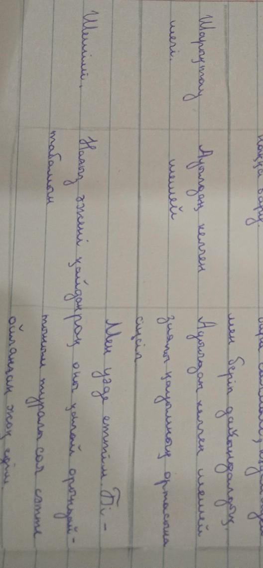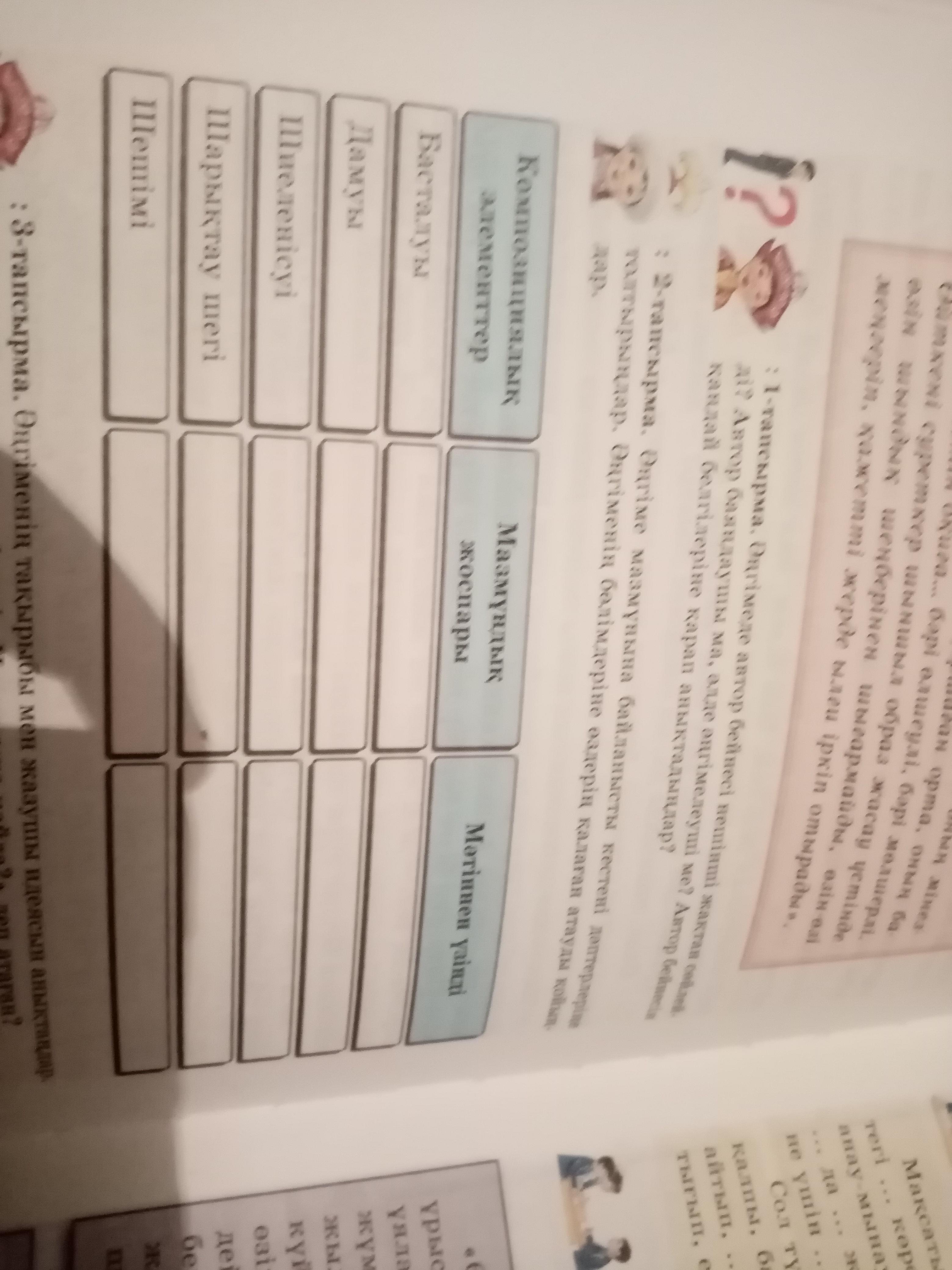 2-тапсырма. Әңгіме мазмұнына байланысты кестені дәптерлеріңе толтырындар. Әңгіменің бөлімдеріне өздерің қалған атаулы қойыңдар