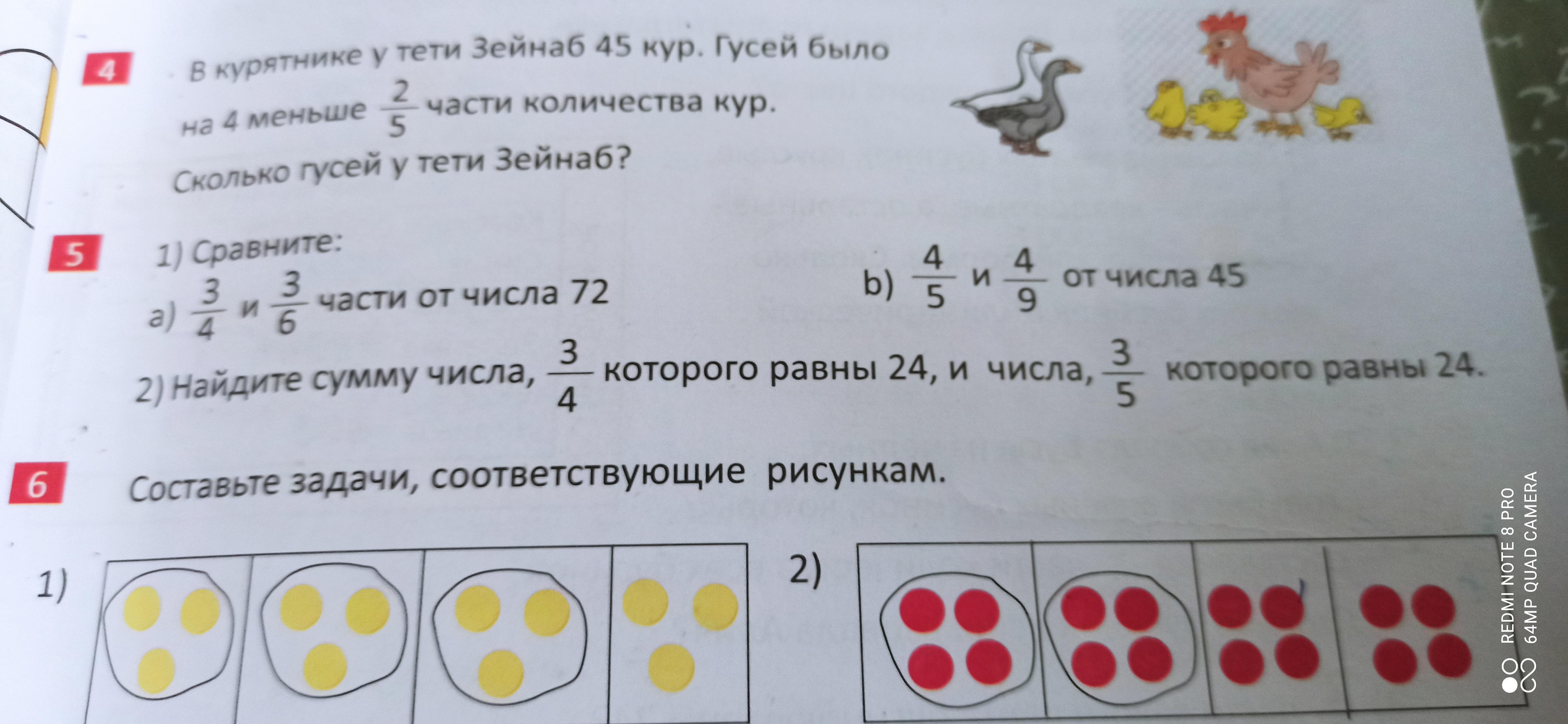 а) 3/4 от 72 это (72:4)*3+18*3=54