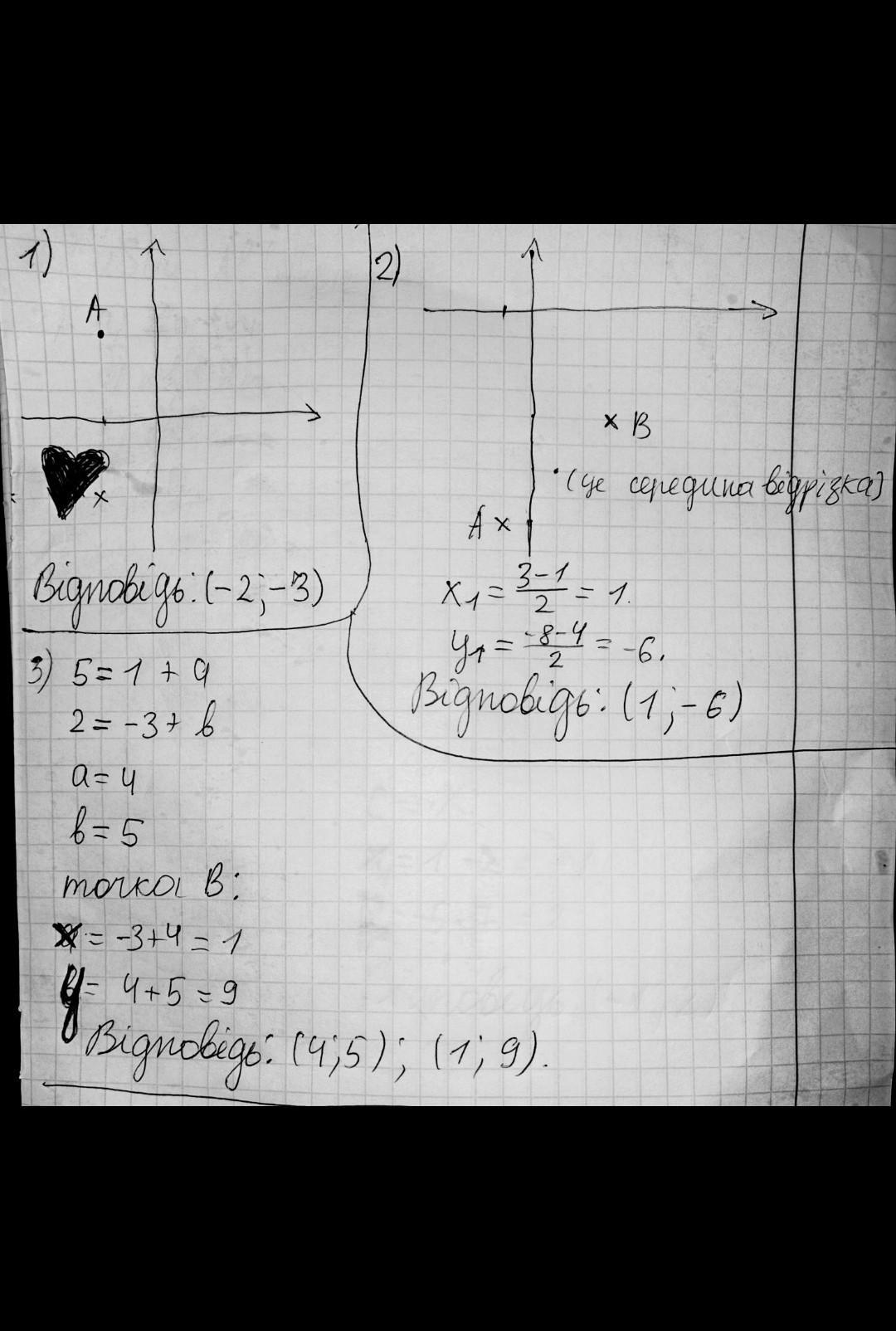 3. Знайти a i b у формулах паралельного перенесення, при якому точка А(1; -3) переходить у точку А1(5; 2). В яку точку перейде при цьому паралельному перенесенні точка В(-3; 4) ?