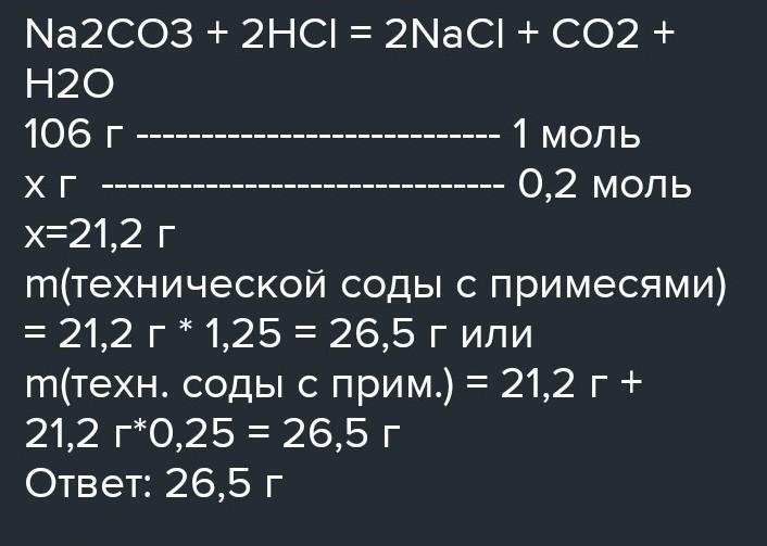 Техническую соду, массовая доля примесей в которой — 25 %, обработали соляной кислотой. Выделилось 4 моль CO2. Вычисли массу технической соды, вступившей в химическую реакцию.