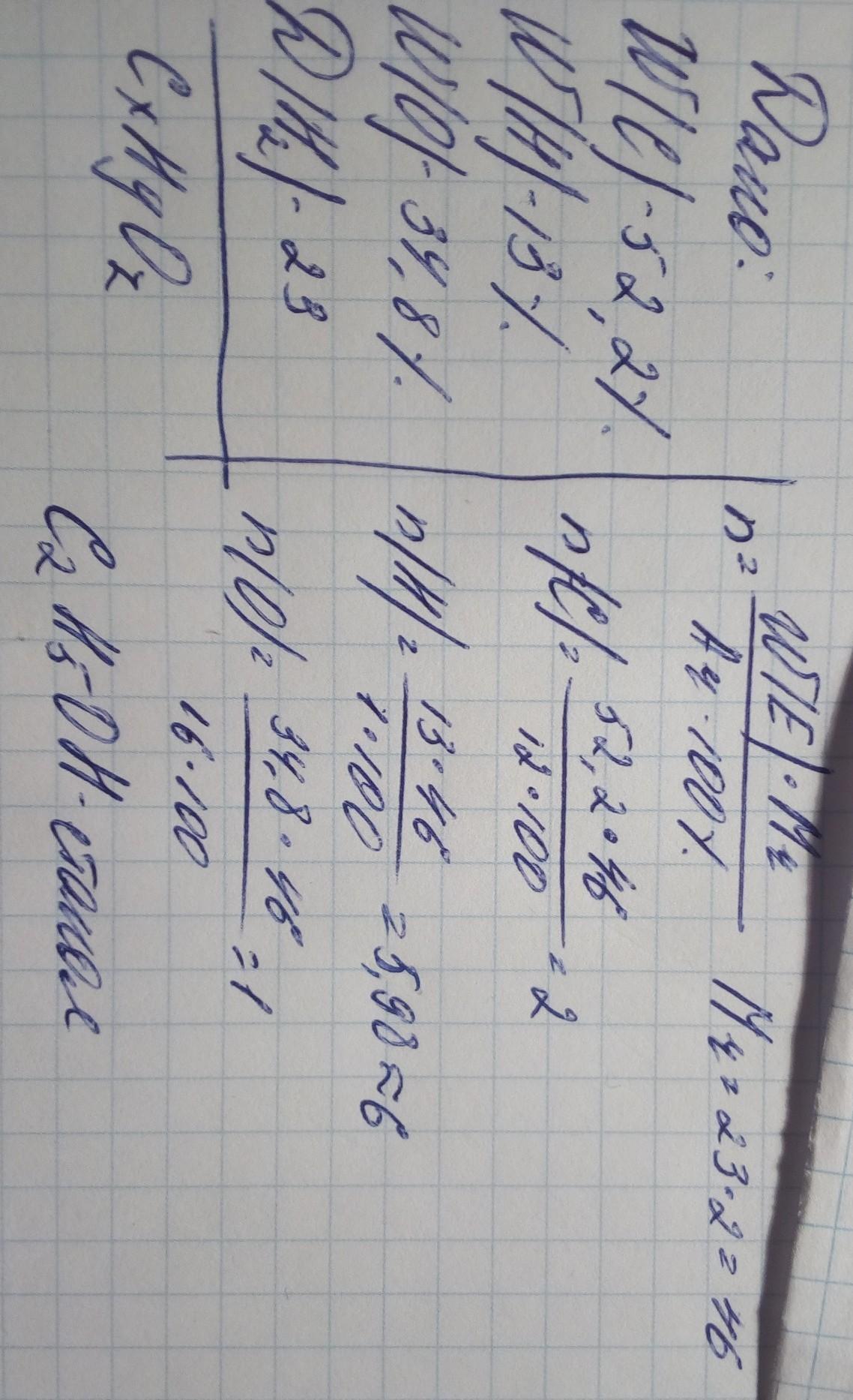 Органічна речовина містить 52,2% Карбону , 13, 0 % Гідрогену та 34,8 Оксигену. Відносна густина пари органічної речовини за воднем становить 23. Визначте молекулярну формулу цієї речовини.