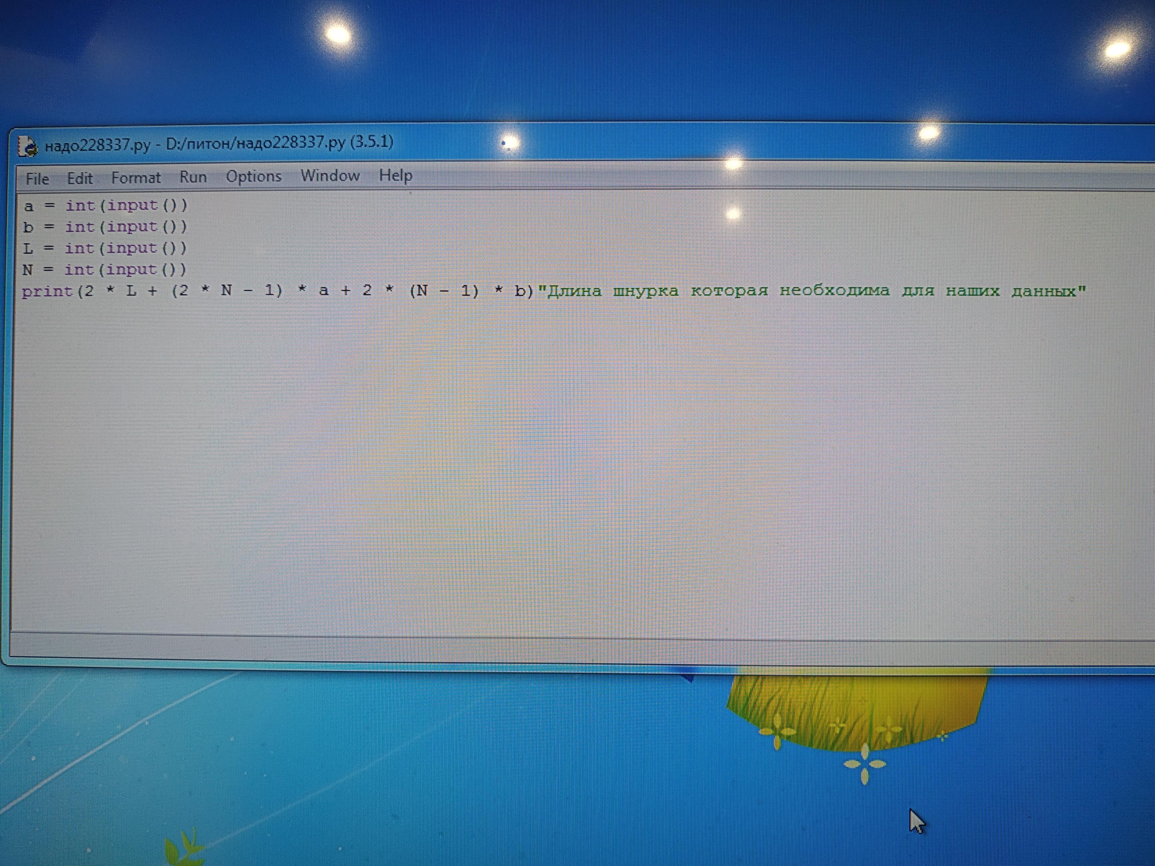 print((2 * L + (2 *N - 1) * a+ 2 * (N - 1) * b), "- Длина шнурка которая необходима для наших данных")