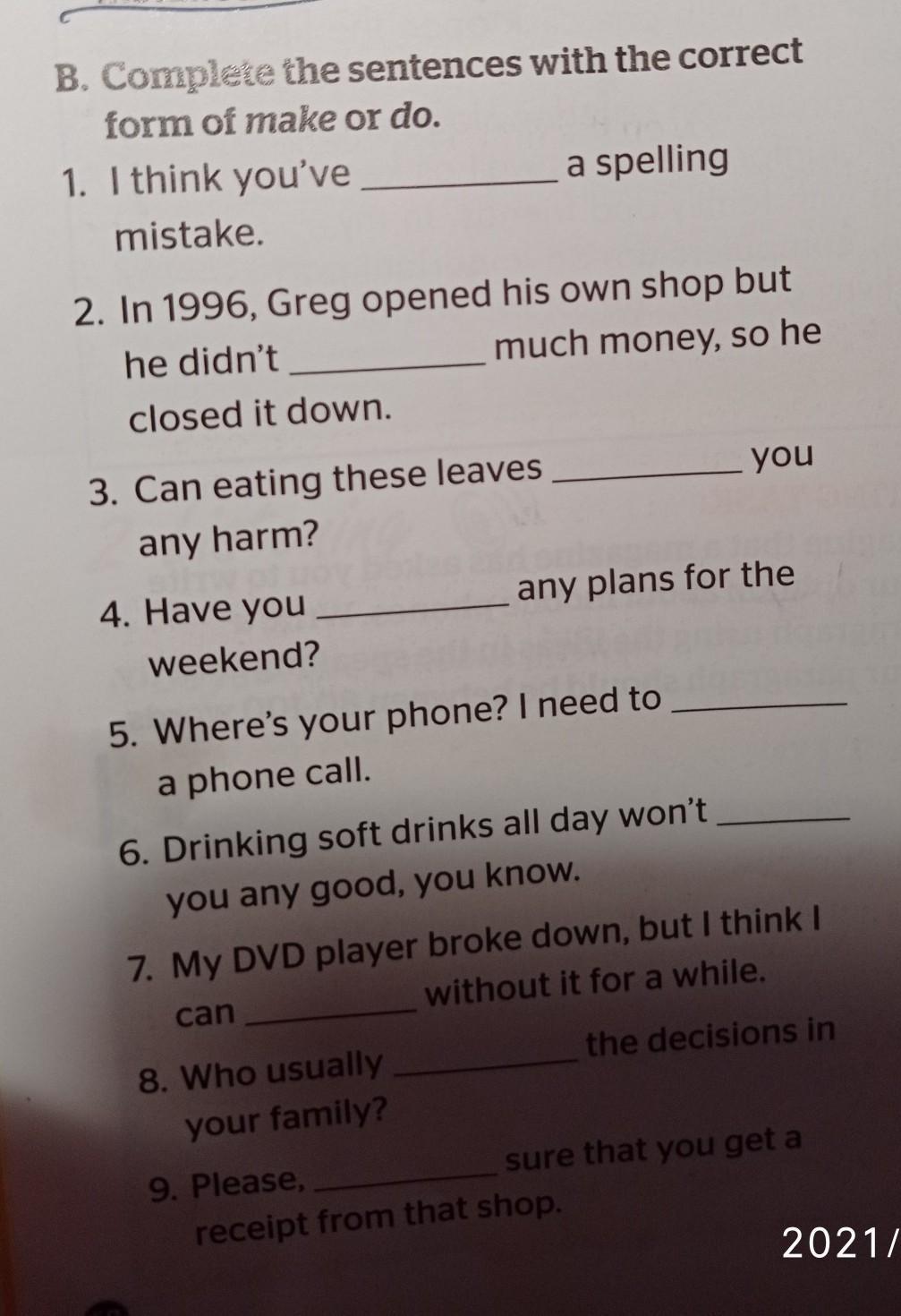 Всё будет make ,но в шестом,первом, третьем и седьмом будет do