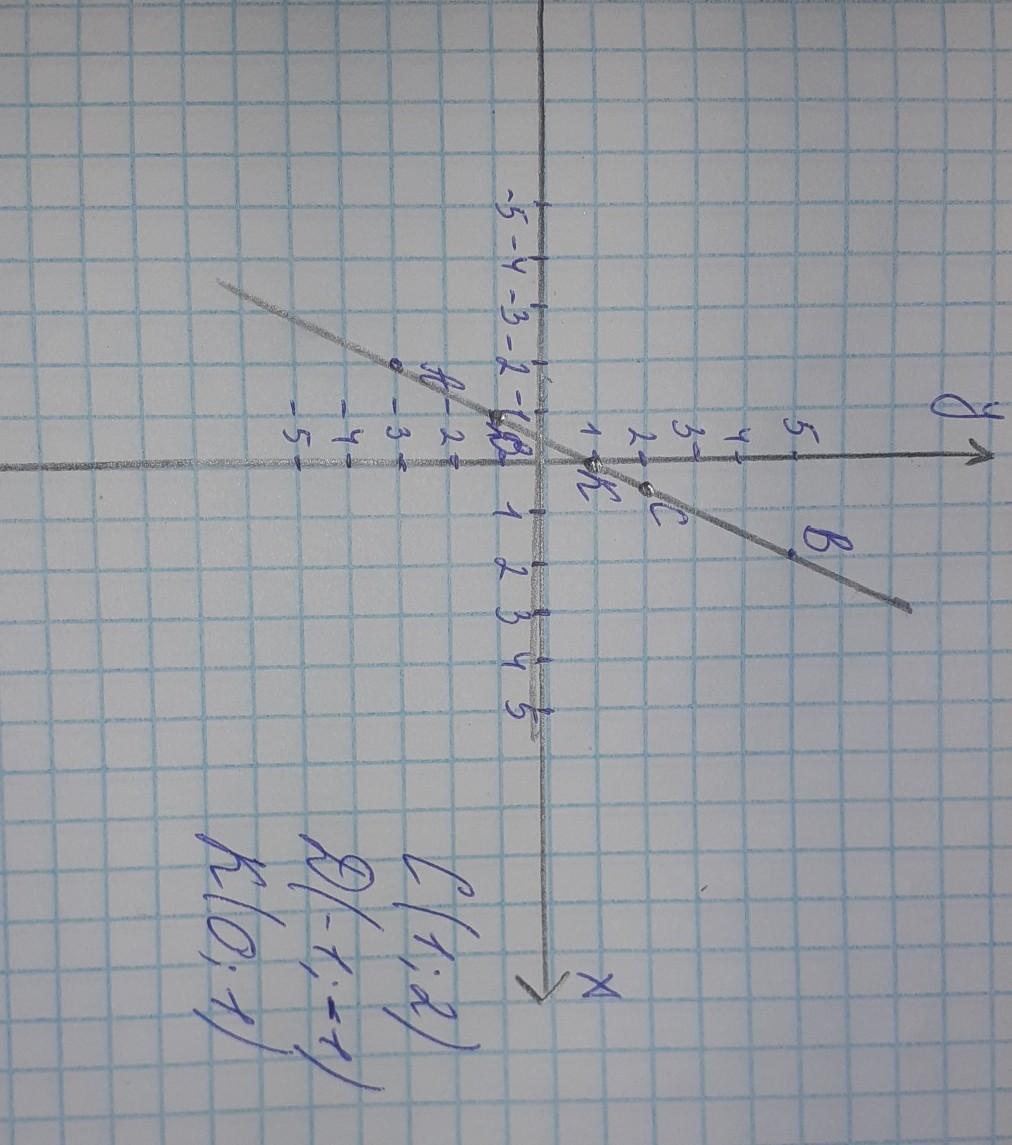 На координатнiй площинi проведіть пряму, що проходить через точки A(-2;-3) i B(2;5).Позначте на цiй прямiй точки з ординатими - 1;1;2.Запишiть координати одержаних точок