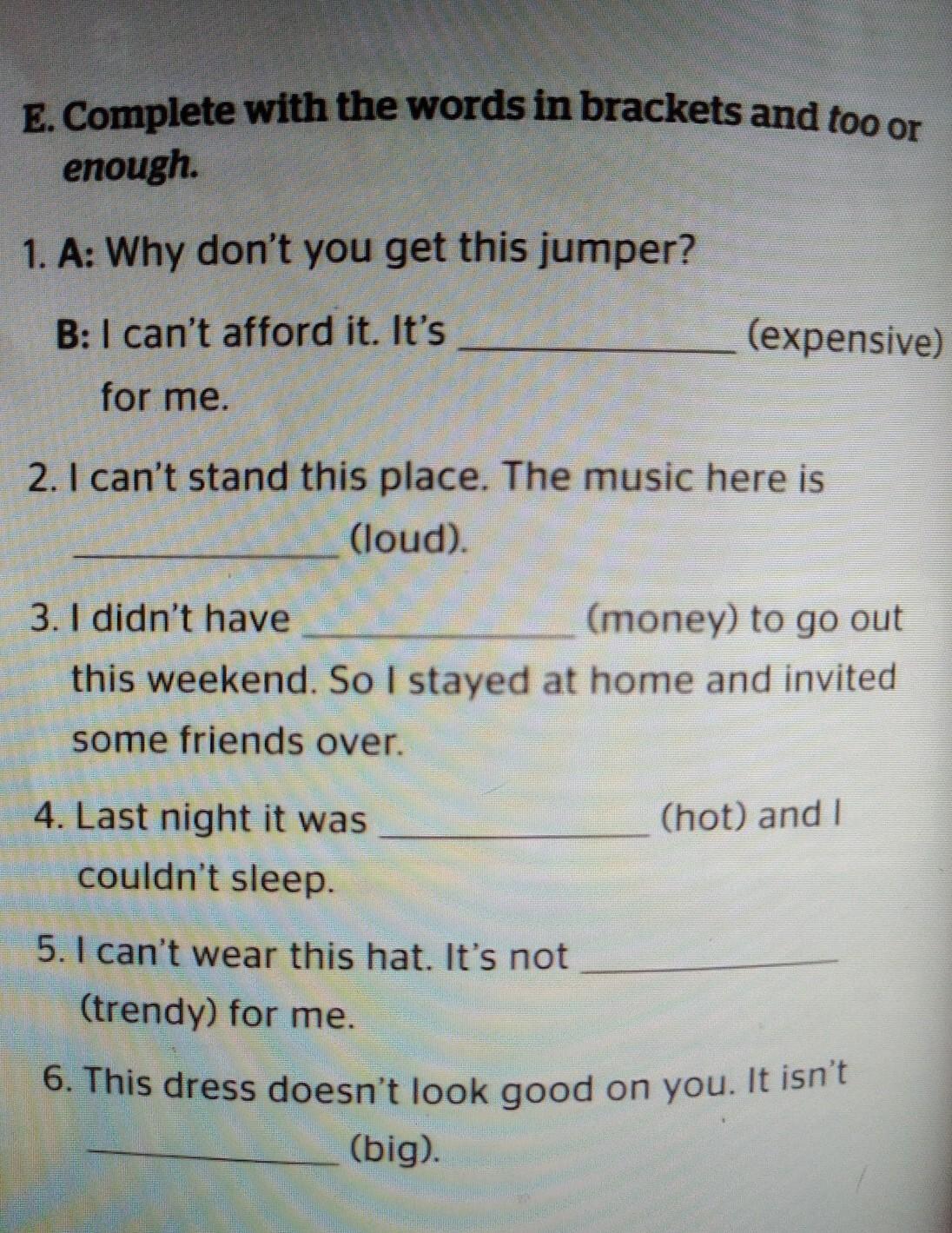 Помогите пожалуйста с английским. Вставити треба too или enough. Заранее огромное спасибо ☺️♥️