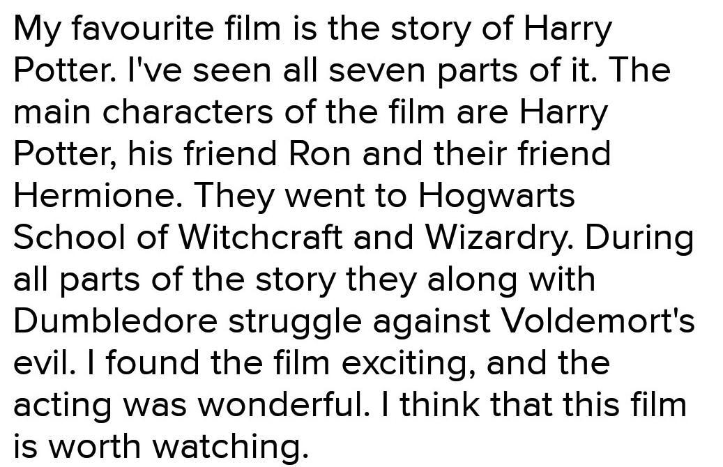 Напишите пожалуйста письмо по английскому языку на тему :мой любимый фильм. Только без сложных слов для 5 и 4 класса. Заранее спасибо!