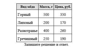 Нужно купить 2 кг меда одного вида. Во сколько рублей обойдется самая дешёвая покупка??
