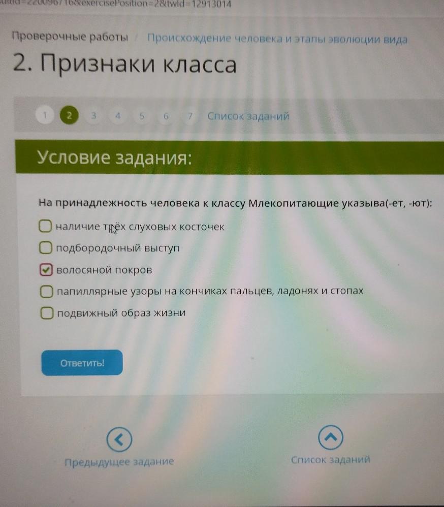 на принадлежность человека к классу млекопитающие указыва(-ет, -ют)...