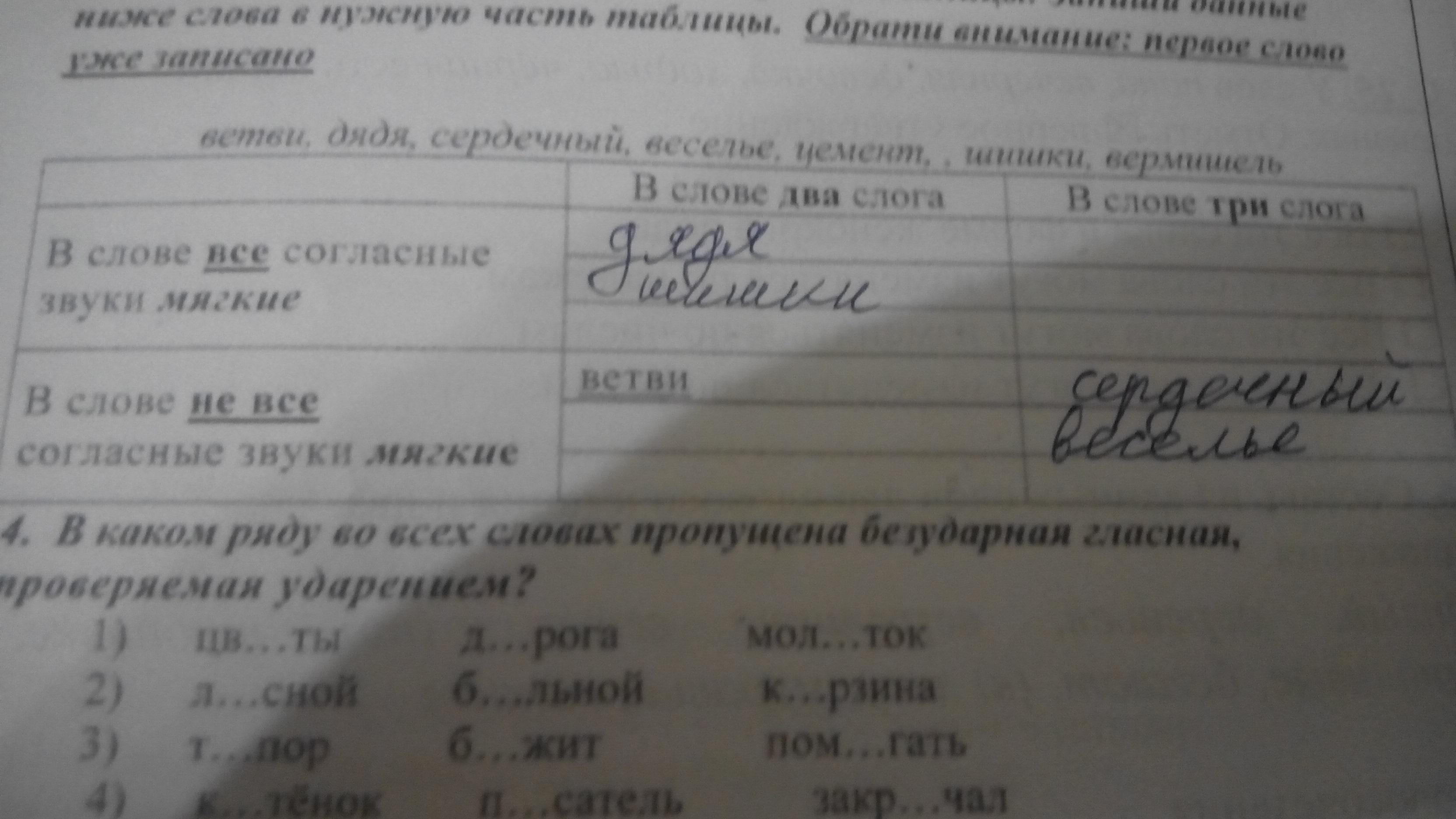Прочитай названия столбцов и строчек таблицы. запиши данные ниже слова в нужную часть таблицы. Слова:Ветви,дядя, сердечный, веселье,цемент,шишки,вермишель