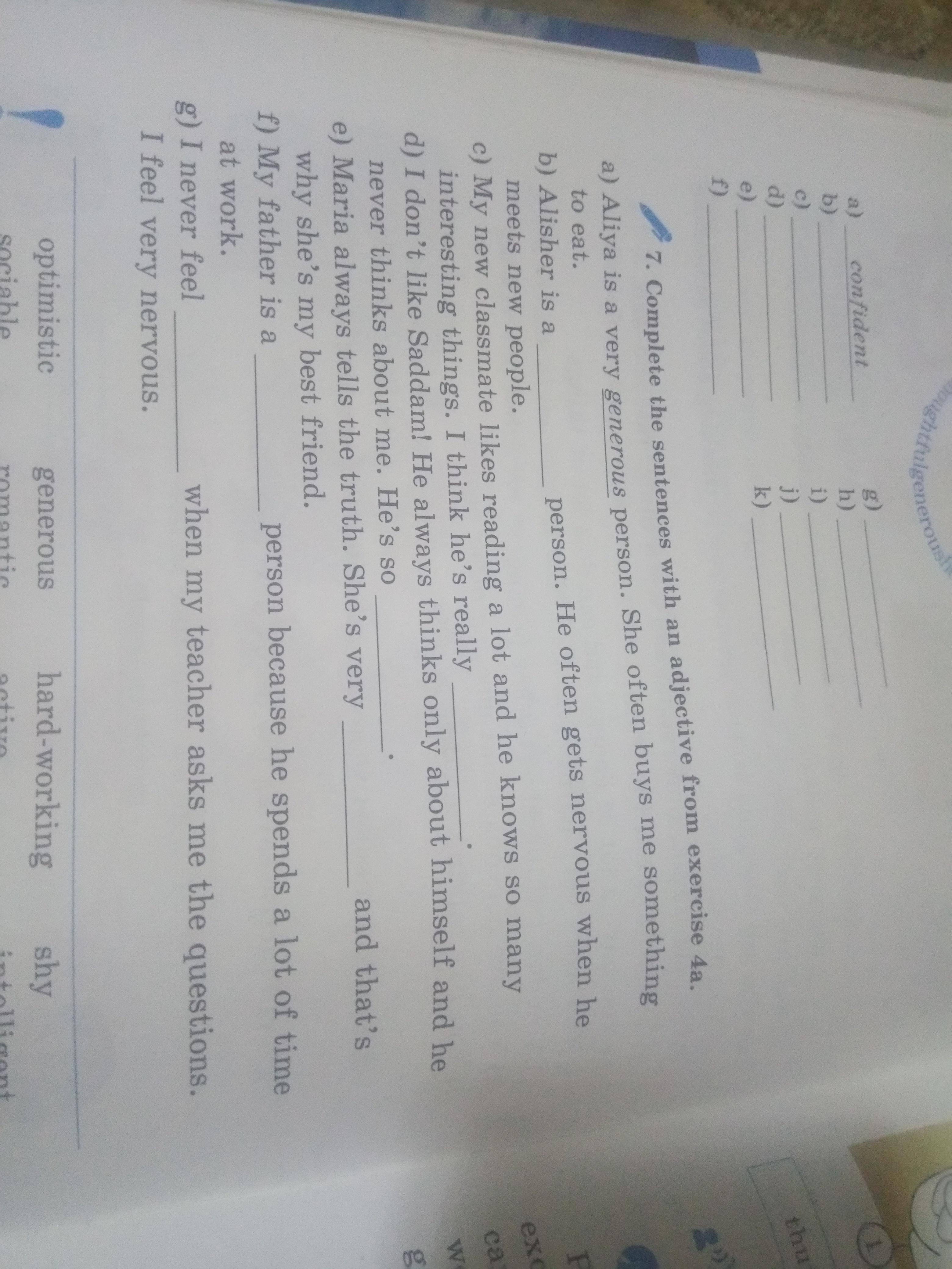 ✍️7. Complete the sentences with an adjective from exercise 4a.