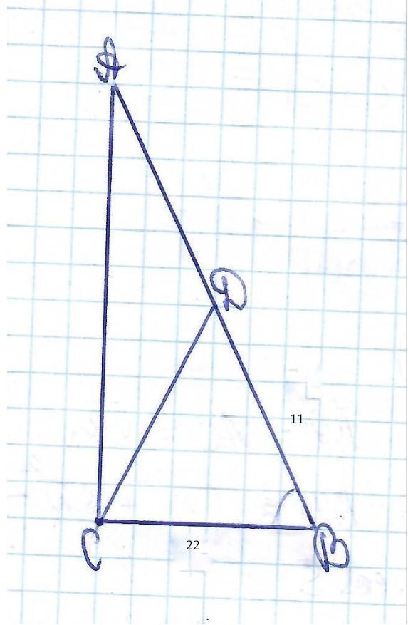 высота CD. Найдите величину угла А, если DB= 11, a BC=22
