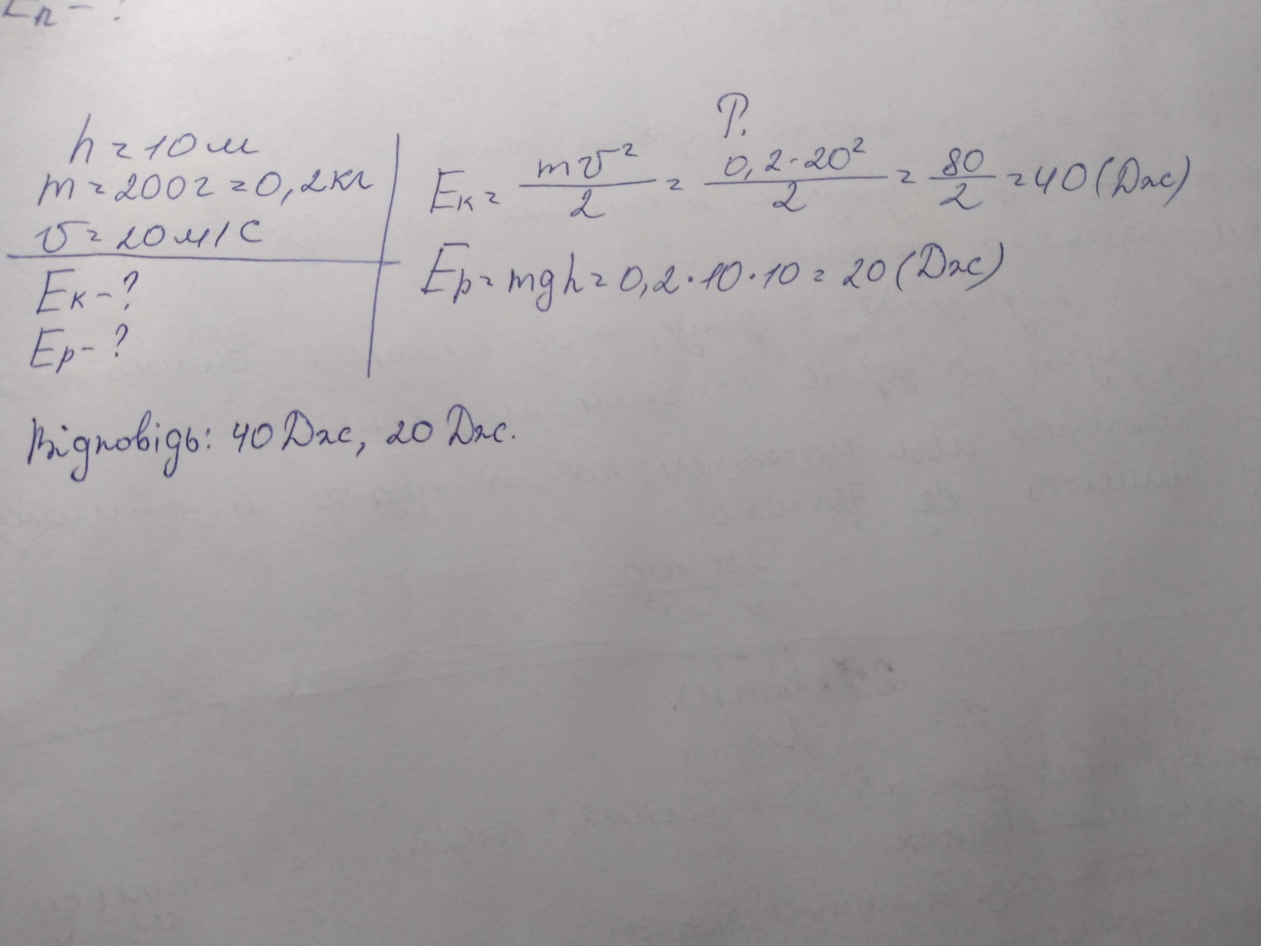 Камінь масою 200 грам кинули вертикально в гору зі швидкістю 20метрів на секунду